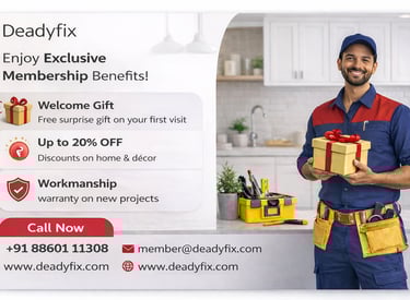deadyfix anything provides services on categorization, with Kitchen Care Plan. You can buy a Kitchen Care Plan to avail all top up services for daily need. Top up are available for RO Services, Plumber work and Room Care. Basic Home Care plan includes all fixing and adjusting from Doors to Locks, Drilling and Window works to Bathroom works. It aims to fulfill user needs and promote accessibility of opportunity to provide best services at doorstep.
